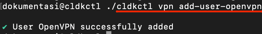 8. Once successful, the terminal displays **"✓ User OpenVPN successfully added".**