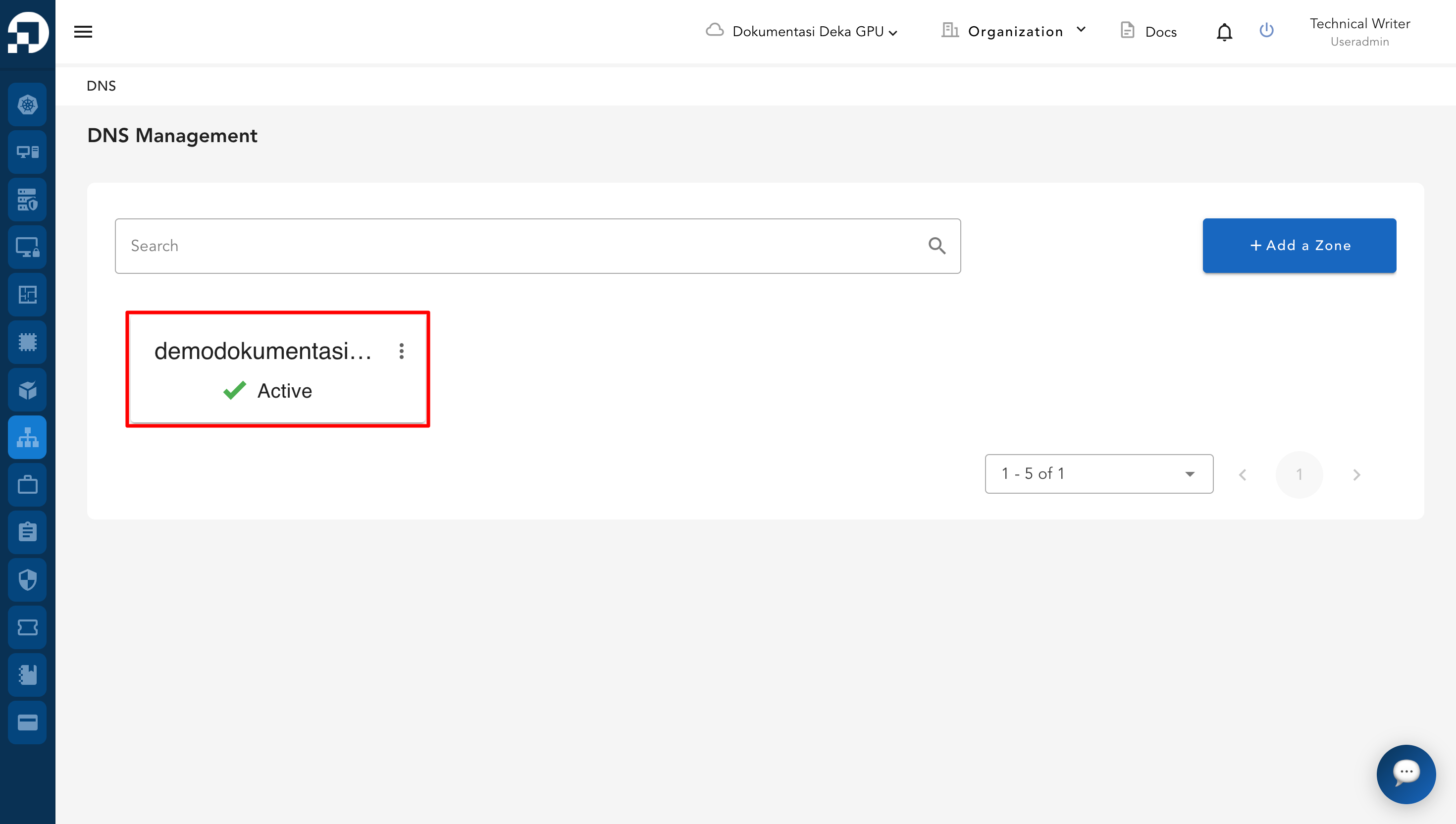 After the first zone is created, additional zones can be added from the DNS Management page using the **+Add a Zone** button.&#x20;